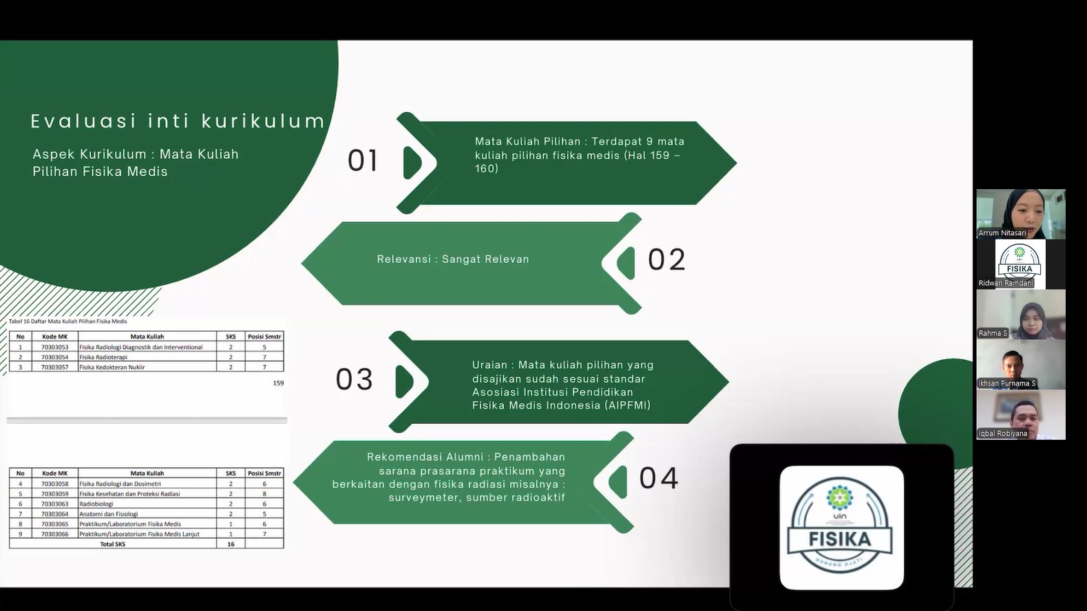 Prodi Fisika melakukan peninjauan Kurikulum Fisika Tahun 2025, salah satu pihak eksternal yang terlibat adalah alumni fisika untuk memberikan masukan terhadap draft kurikulum Fisika Tahun 2025.