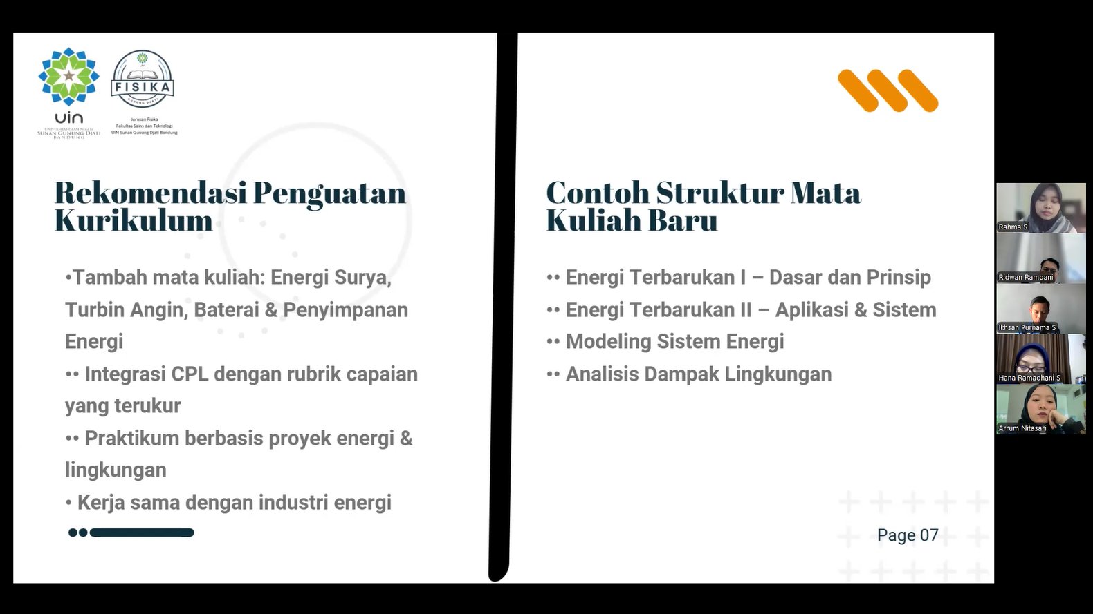 Program Studi Fisika Fakultas Sains dan Teknologi UIN Sunan Gunung Djati Bandung melaksanakan kegiatan 2025 Physics Curriculum Review by Alumni pada Senin, 17 November 2025. Kegiatan berlangsung secara daring dari pukul 10.00 hingga 12.00 WIB dan diikuti oleh dosen, mahasiswa, serta para alumni yang berkiprah di berbagai bidang profesi.