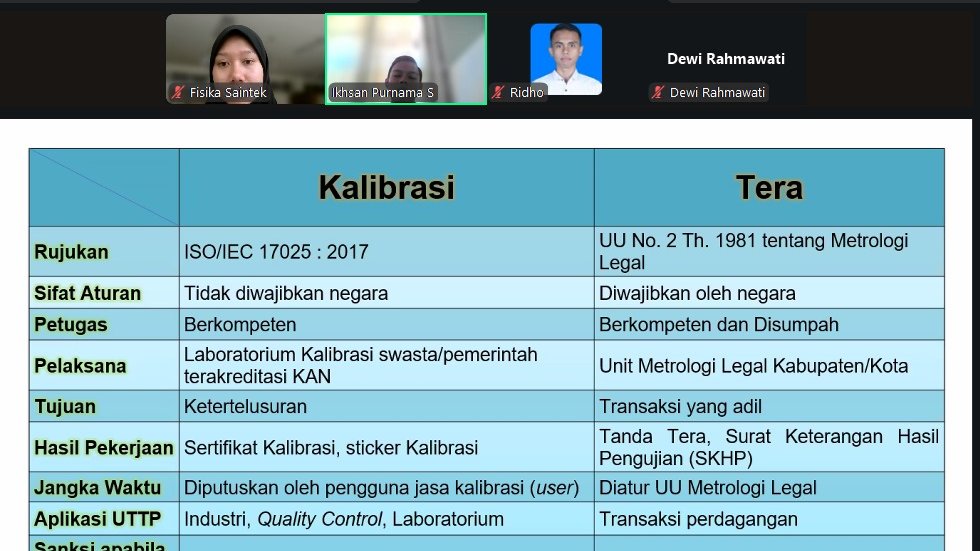 Kegiatan ini menghadirkan Ikhsan Purnama Santika, S.Si, Pengawas Kemetrologian pada Dinas Perdagangan dan Perindustrian, sebagai narasumber. Kuliah dilaksanakan secara daring melalui platform Zoom Meeting pada Senin, 29 September 2025 pukul 08.00–10.00 WIB.
