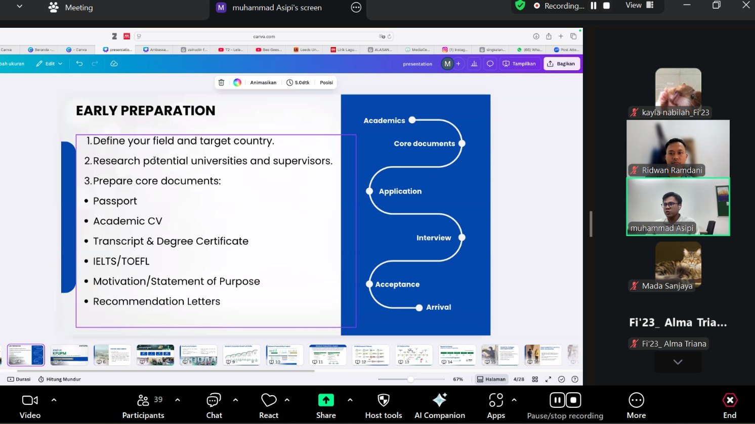 Bandung (25 Oktober 2025) – Jurusan Fisika Fakultas Sains dan Teknologi UIN Sunan Gunung Djati Bandung kembali menggelar kegiatan Sharing Session Jilid 11 dengan tema “Beasiswa, Fisika, dan Masa Depan: Kupas Tuntas KFUPM (King Fahd University of Petroleum and Minerals) Bersama Alumni.” Kegiatan yang dilaksanakan secara online melalui Zoom Meeting ini menghadirkan narasumber M. Asipi Qostolani, M.Sc, alumni Jurusan Fisika yang berhasil meraih beasiswa di King Fahd University of Petroleum and Minerals (KFUPM), Arab Saudi.