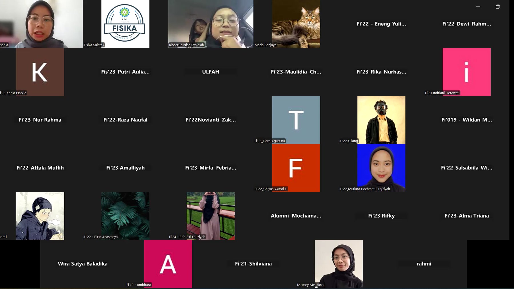 Kegiatan yang dilaksanakan secara daring melalui Zoom Meeting pada Minggu, 25 Mei 2025, pukul 10.00–12.00 WIB ini menghadirkan Tsania Nurhayati KD, S.Si, Product Specialist Imaging di D&V Medika Group, sebagai narasumber. Acara ini diikuti secara antusias oleh mahasiswa Fisika UIN Bandung yang tertarik pada bidang Fisika Medis dan teknologi kesehatan.