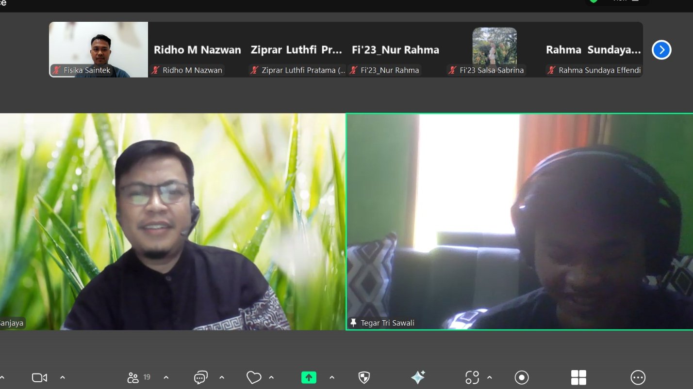 Program Studi Fisika menyelenggarakan kegiatan sharing session jilid 8 bertajuk “Implementasi Analisis Fisika di Dunia Pengembangan Product Digital” pada tanggal 19 Juli 2025 secara online Zoom Meeting. Acara ini menghadirkan Tegar Tri Sawali, S.Si., alumni Program Studi Fisika yang saat ini berkarier sebagai Product Manager di kardoos.id.